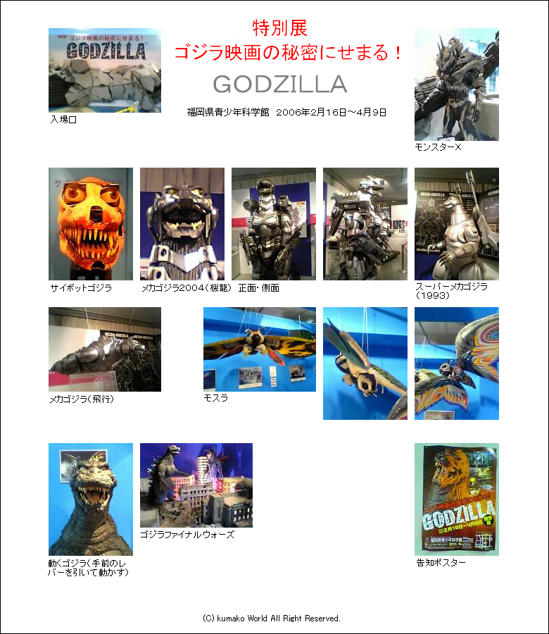 先日、知人より「特別展 ゴジラ映画の秘密にせまる!」のチラシをいただきました。ゴジラです。親族みんな、SもNも幼少時より大好きなゴジラの映画展です。出かけない理由はありません。早速、親族らを誘って、久留米市の福岡県青少年科学館まで出かけてきました。